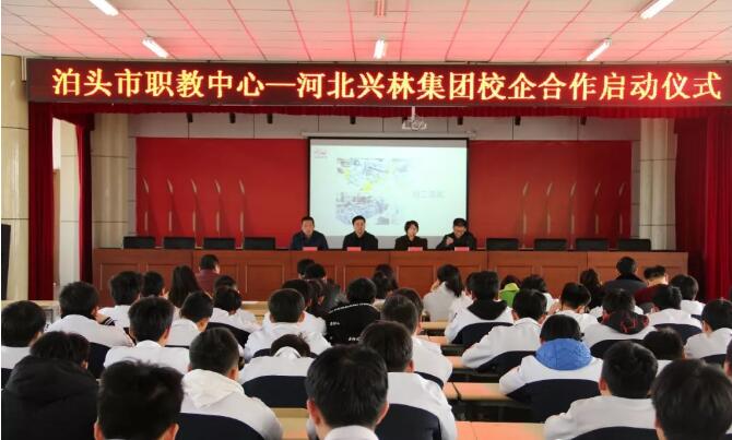 2018年3月6日,河北興林集團與泊頭職教中心校企合作啟動儀式在泊頭職教中心舉行。興林集團總經理葛總,副總經理童總、泊頭職教中心劉金芳副校長、徐立忠主任等領導出席了本次儀式,相關教師、學生參加了此次會議。